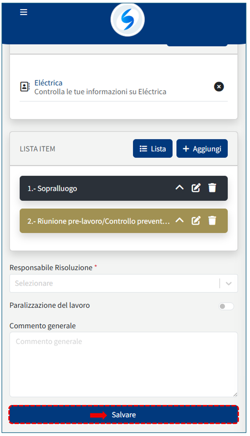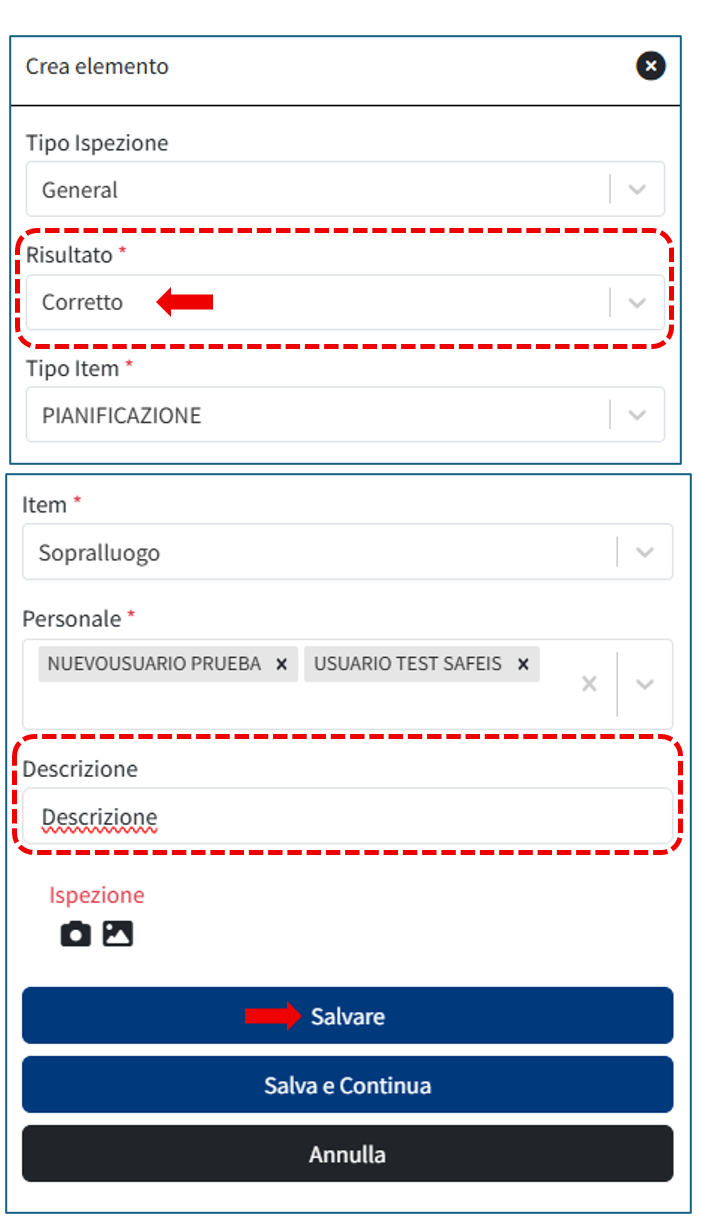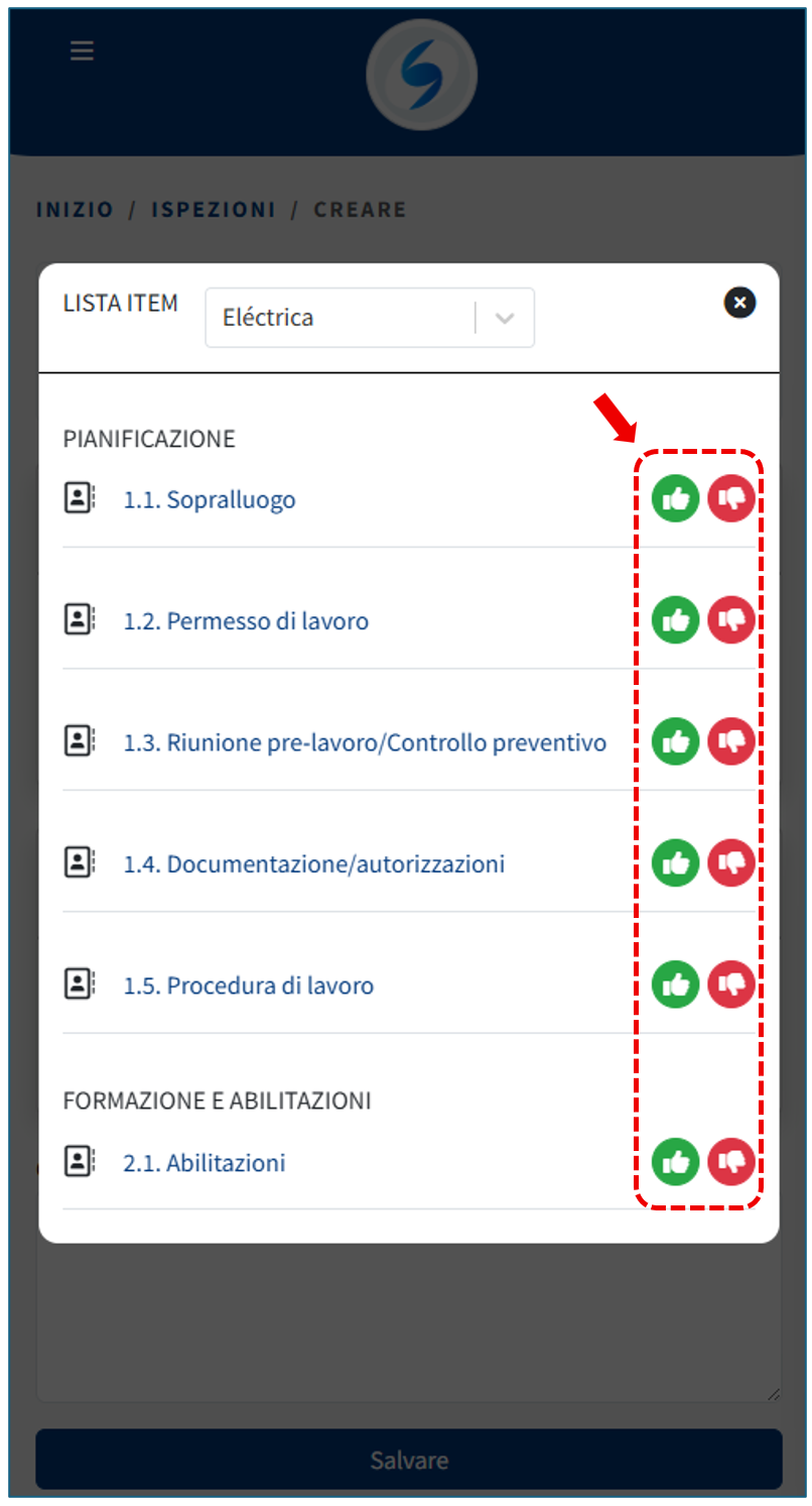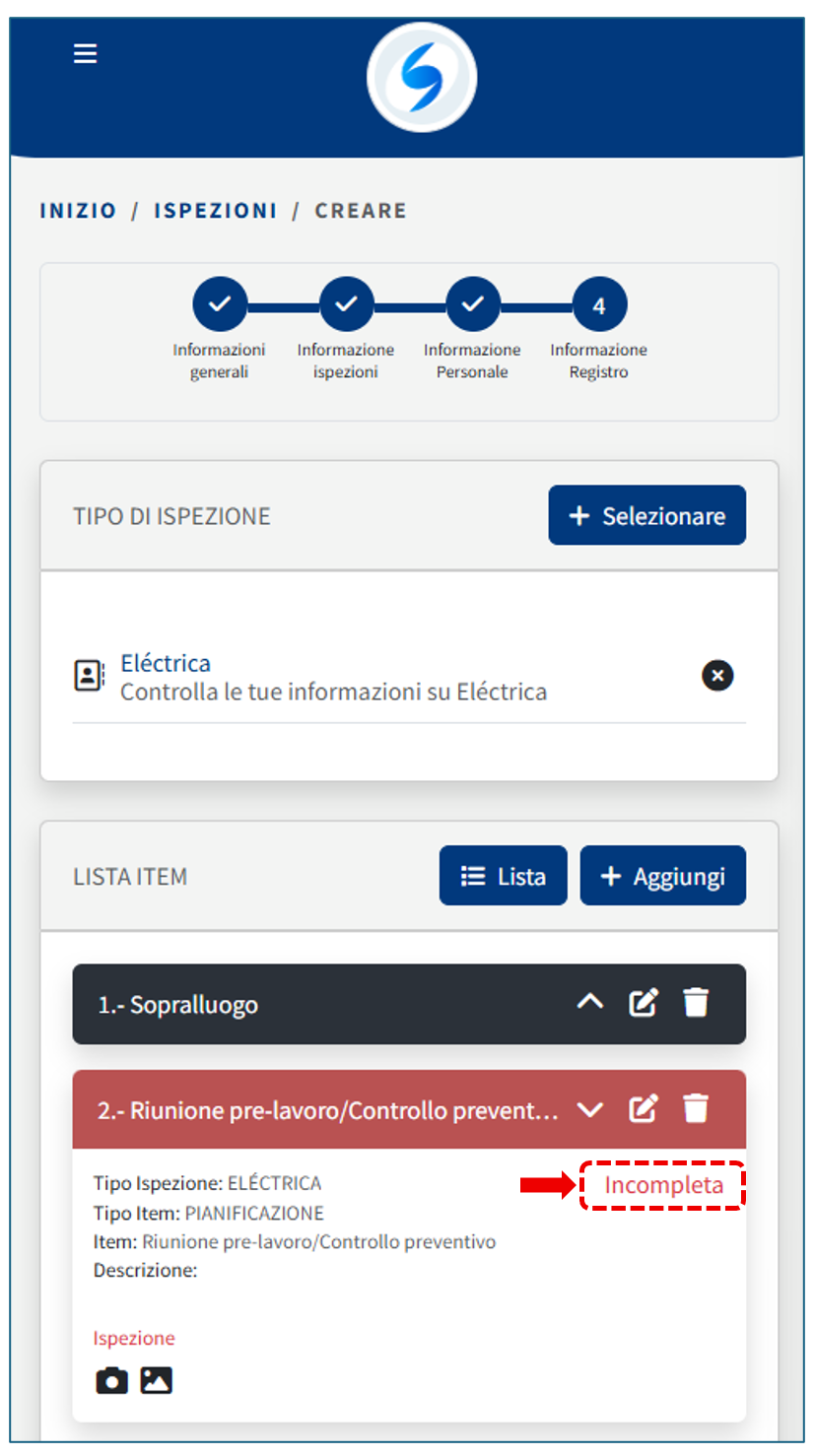 Una volta registrati tutti gli Elementi, procedi a salvare l’Ispezione.