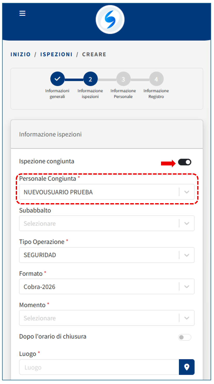 Vengono registrati i dettagli obbligatori dell’ispezione, come ad esempio se si tratta di un’ispezione congiunta oppure no.