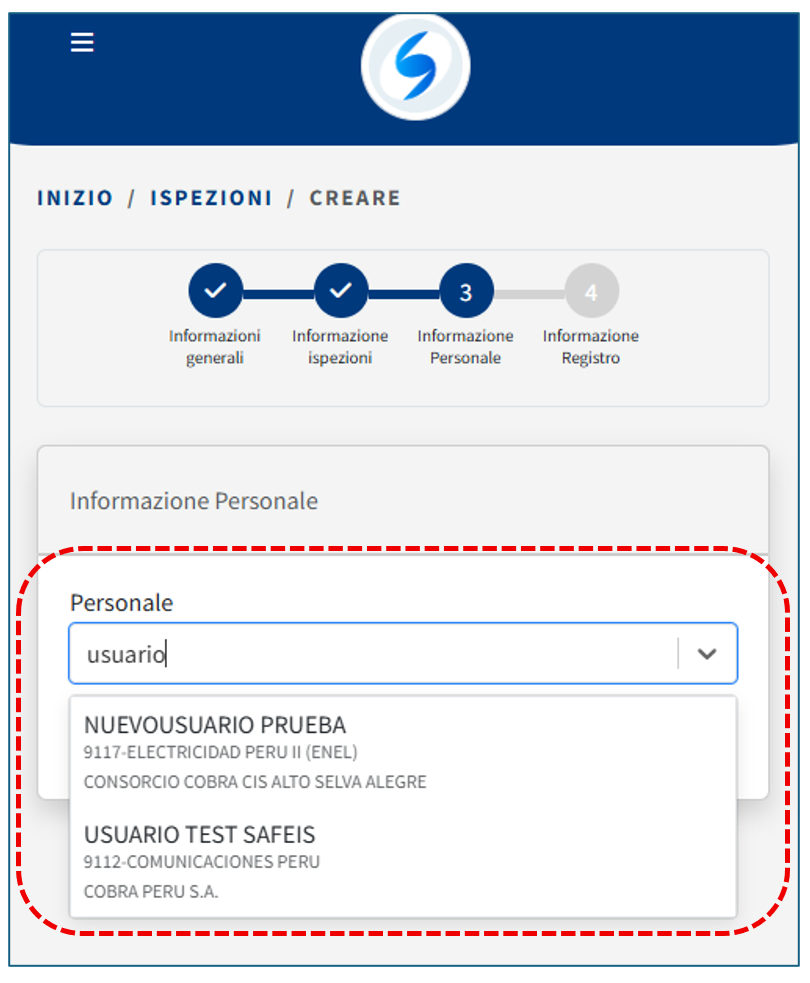3) Quando inserisci il personale che stai ispezionando, la prima persona aggiunta apparirà come Responsabile dell’ispezione.