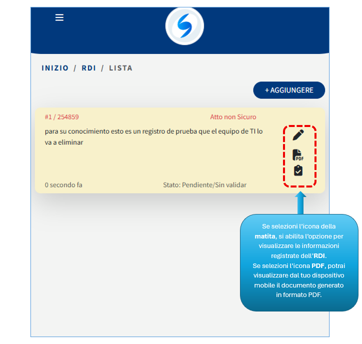 Una volta registrato l’RDI, apparirà nella tua lista dei registri.