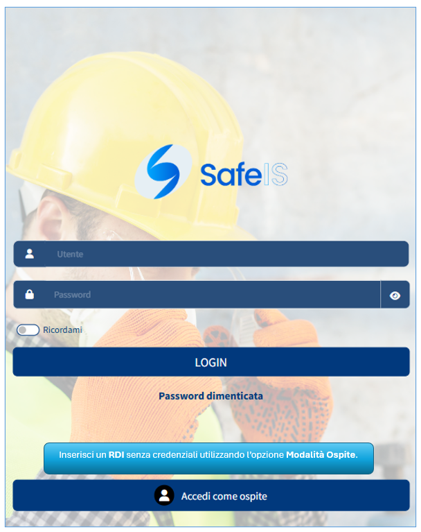 Tieni presente che un RDI può essere registrato anche come Utente Ospite (senza credenziali di accesso) dalla schermata iniziale.