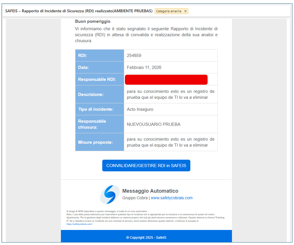 Gli Incidenti vengono registrati come segue: