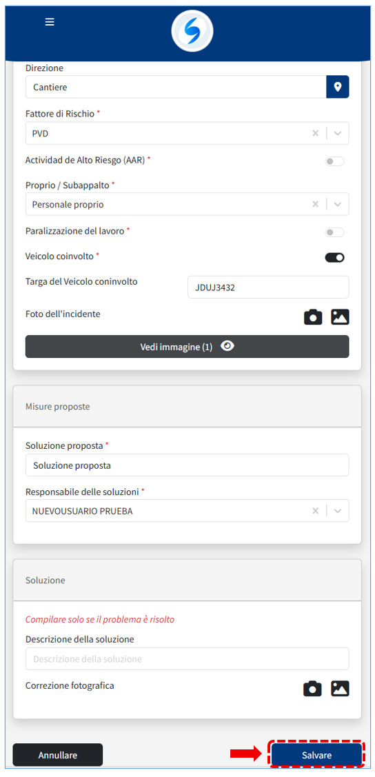 Gli Incidenti registrati vengono aggiunti dopo il salvataggio.